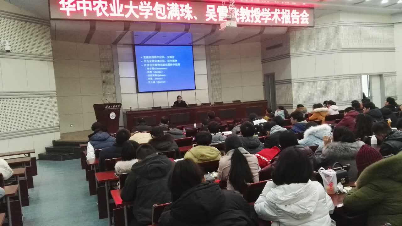 12月15日下午,我们和生命科学技术学院在文学楼学术报告厅共同主持了第228、227期澴川讲坛。本次澴川讲坛,我们邀请了华中农业大学包满珠教授、吴雪飞教授作学术报告。包满珠教授为广大师生作了《中国原产地园林植物产业化问题探讨》的学术报告,包满珠教授的报告对中国原产地园林植物产业化发展面临的问题及解决路径进行了深入剖析;吴雪飞教授为广大师生作了《风景园林为导向的城市设计》的学术报告,报告深入解读了绿色城市设计的内涵和技术路线,见解独特新颖。两场报告会现场气氛热烈,内容精彩纷呈。来自必威BETWAY官网和生命科学技术学院的300余名师生参加了学术报告会。