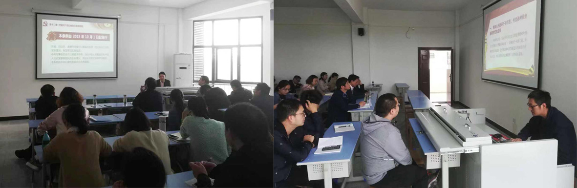 10月18日下午,我们全体教职工在天成楼414集中进行政治理论学习暨教工支部主题党日活动,本期的主题是学习《中国共产党纪律处分条例》《习近平新时代中国特色社会主义思想三十讲》第二讲、《关于开展扫黑除恶专项斗争的通知》《习近平在全国教育大会讲话精神》,活动由党总支书记、院长胡波同志主持。