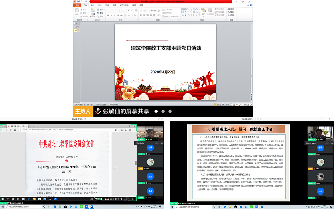 4月22日上午,我们全体教职工利用腾讯会议网络视频召开了本年度第一次政治理论学习暨教工党支部主题党日,会议由院党总支书记胡波同志主持。