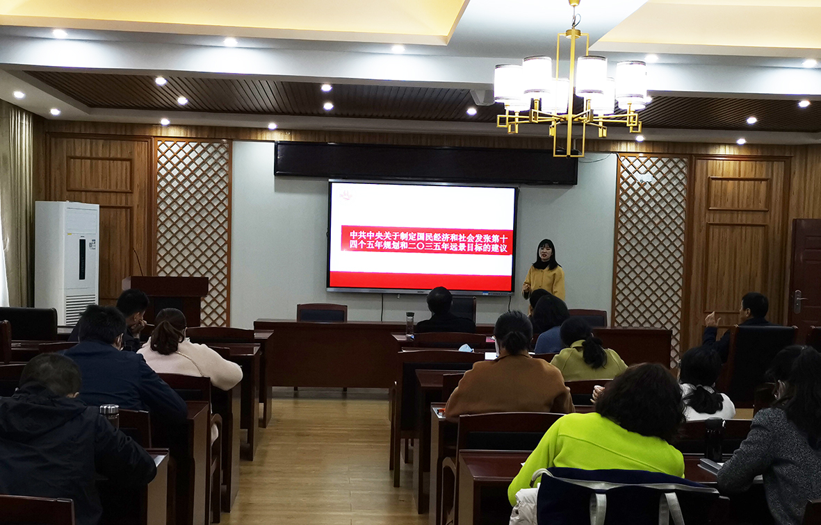 党总支副书记丁黎同志领学了《中国共产党第十九届中央委员会第五次全体会议公报》和《中共中央关于制定国民经济和社会发展第十四个五年规划和二〇三五年远景目标的建议》精神。