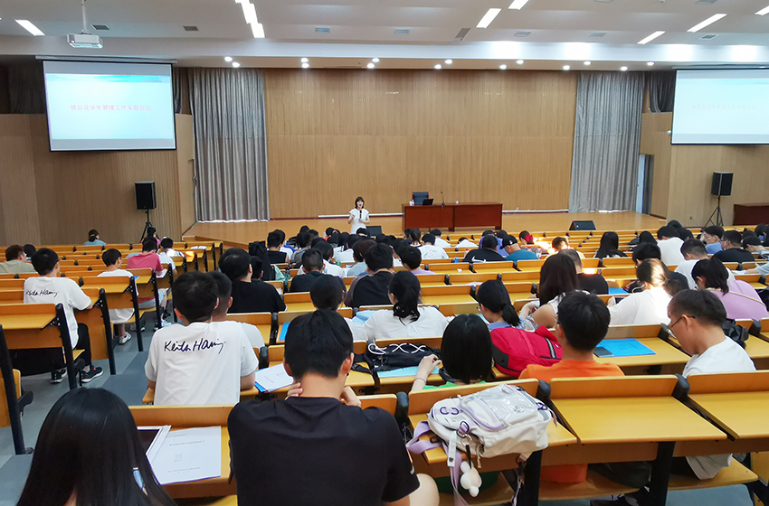 其次丁黎同志从宿舍调整、外出实习安全、疫情防控、考研和就业等五个方面做了详细的讲解,尤其是针对就业,丁黎同志分析了未来形势,提出了“六问”。同时强调在面试环节要注意外在形象、内在气质;在工作中要学会信任、加强合作、学会低头;在学习中要加强综合素质的提高,学会做减法。