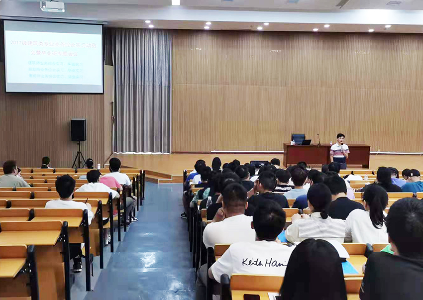 6月23日下午,我们2017级全体学生(含2019级建筑学专升本学生)齐聚天成楼报告厅召开业务实习动员会暨2022届毕业生专题工作会议,会议由副院长陈必锋同志主持,参加会议的还有党总支副书记丁黎、建筑学系主任吴明杰、城乡规划系主任郝国芳和风景园林系主任吴银玲同志。