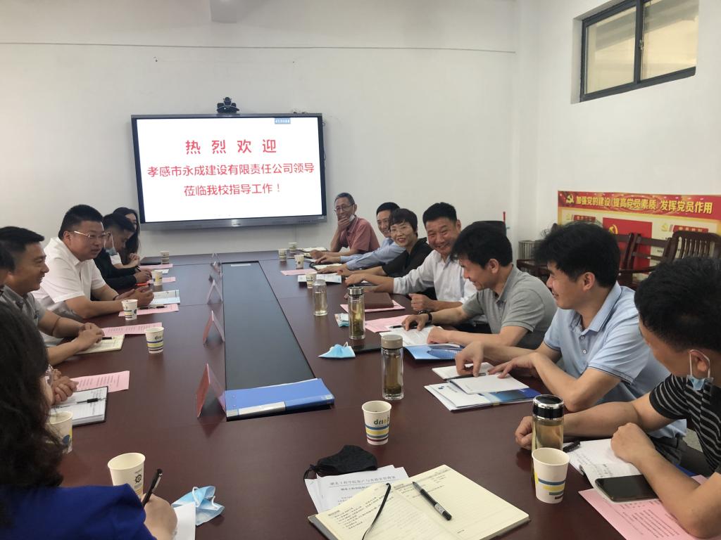 5月26日,孝感市永成建设有限责任公司董事长李保国、副总经理兰宏鹏、总工程师杨璐、项目部经理刘义来学院商谈校企合作事宜,我们与土木学院的领导班子和部分骨干教师参加了座谈。