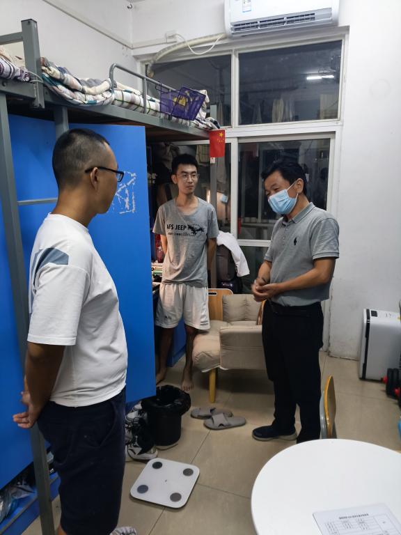 姜功恒对入住寝室的专升本学生表达慰问,欢迎他们来学校继续就读,询问他们学校住宿环境如何,是否适应新的环境等,提醒同学们务必要严格遵循学校疫情防控管理规定,时刻做好个人防护,时刻佩戴口罩,为学校疫情防控工作添砖加瓦。