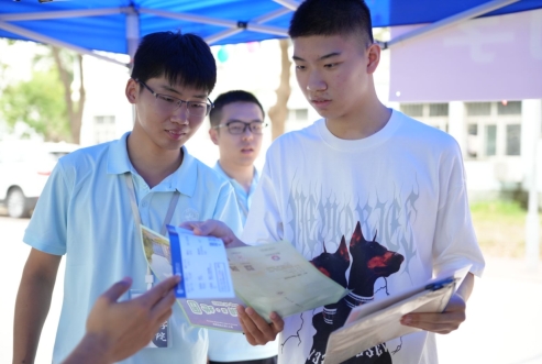 “同学你好,报到点在这边,我带你过去吧!”为充分发挥学生干部的先锋模范作用,学院安排党员、积极分子、学生会成员加入志愿者队伍,对新生开展“一对一”志愿帮扶。入学前就主动联系新生,为新生解答疑问。新生入校后,我们志愿者为新生提供行李搬运、全流程报到指导服务,带领新生依次完成扫码、登记注册、宿舍入住等事项。。