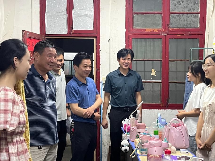 为深入了解我们2023级新生和其他年级在校生思想动态,引导新生养成良好的卫生习惯,帮助新生更快适应校园环境。9月12日晚上,院长吴贻猛、院党委书记姜功恒、副院长陈必锋、院党委副书记黄星和全体辅导员、班主任,深入学生寝室走访慰问。