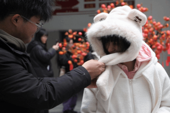 现场参与礼物交换的小孙同学开心地说:“我抽到了一顶毛绒绒的小熊帽子,好可爱!我很喜欢这个礼物,就是有点不好意思带出去,准备找个女同学再次交换!”