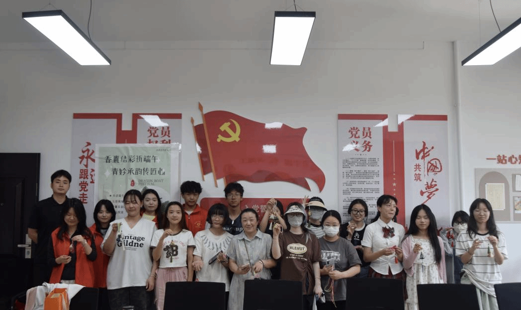 活动现场温馨热闹。经验丰富的周阿姨化身“巧手师傅”,耐心细致地指导同学们穿针引线、折叠布料、填充艾草香料、收口结绳。学生们兴致盎然,虚心学习,在周阿姨的“手把手”教学下,一个个小巧精致的艾草香囊逐渐成型,寓意平安健康的五彩丝线也在欢声笑语中编织成缕缕祝福。一针一线间,不仅传递着传统手工技艺,更悄然拉近了宿管阿姨与同学们的距离,编织起浓浓的楼栋亲情。