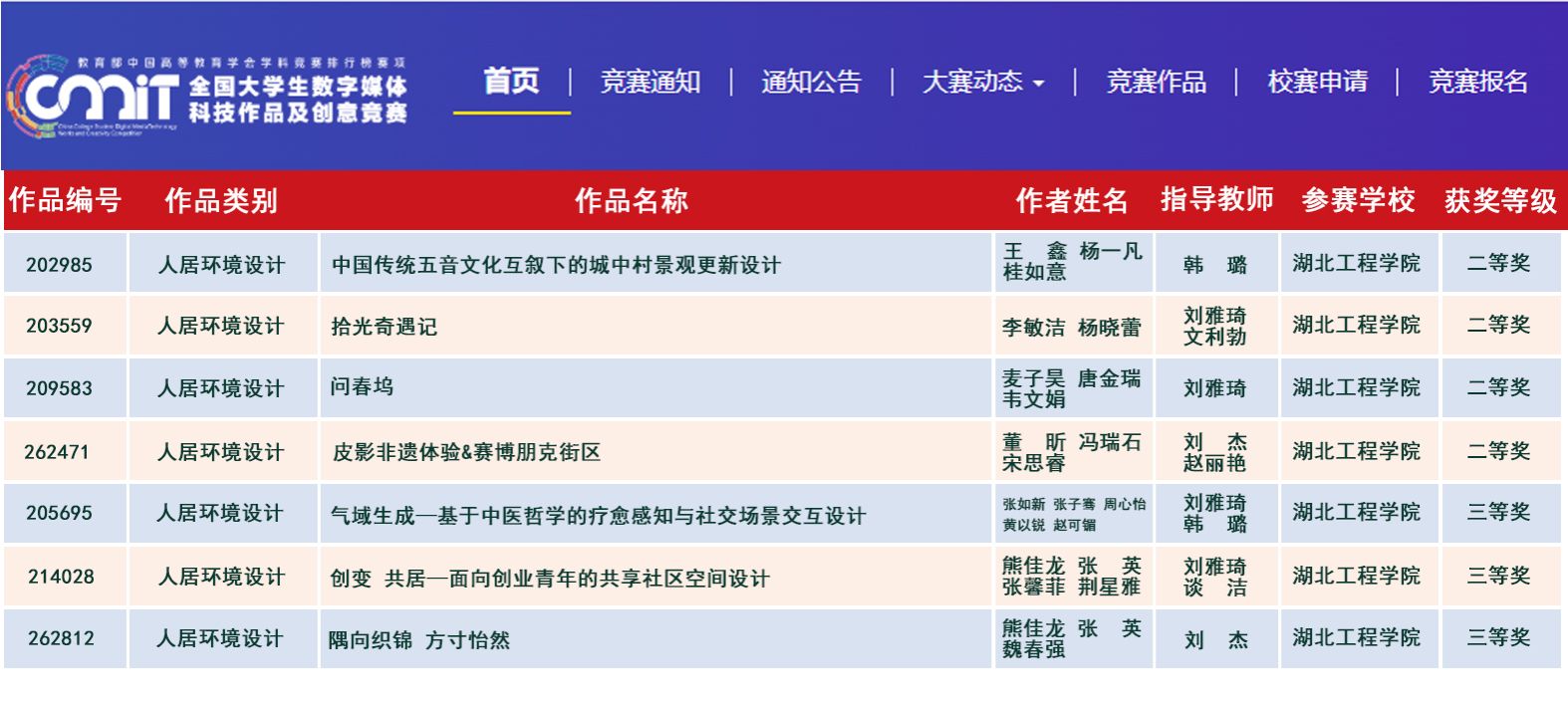 近日,2025年“第13届全国大学生数字媒体科技作品及创意竞赛”湖北赛区省赛评比结果公示结束,我们学子取得二等奖4项、三等奖3项的好成绩。