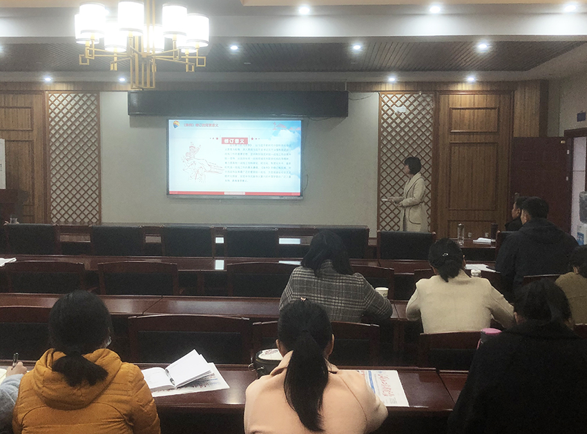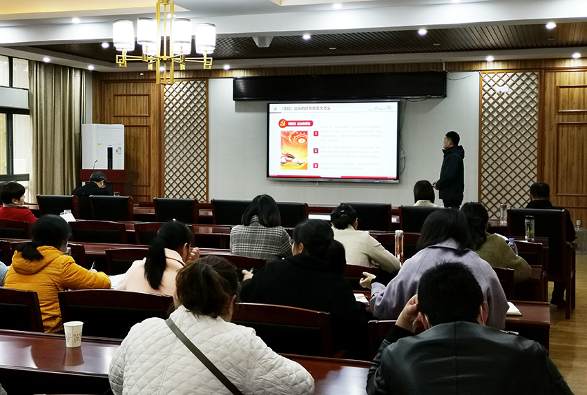 党总支副书记丁黎同志从统一战线修订的背景意义、贯彻落实和全文解读三部分领学了《中国共产党统一战线工作条例》的内容。